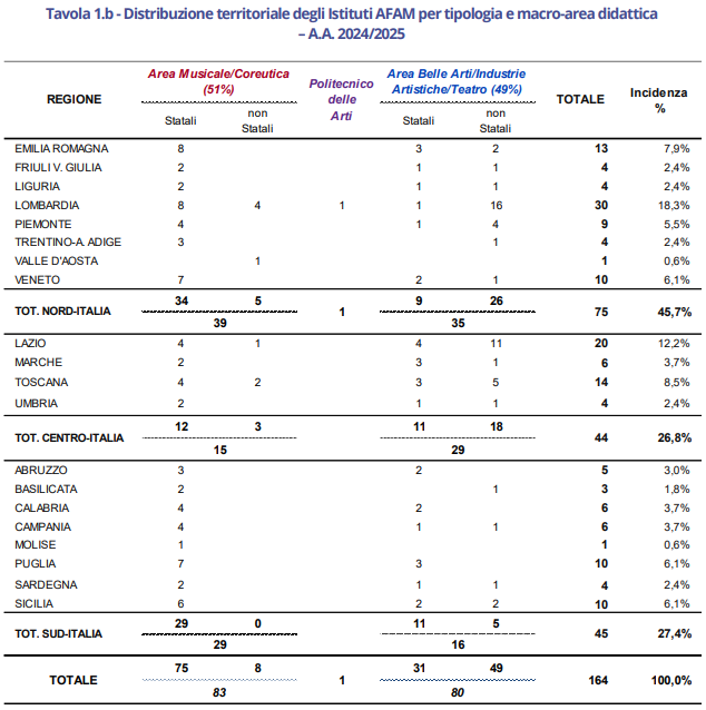 Il sistema AFAM è composto anzitutto da 103 istituti pubblici: